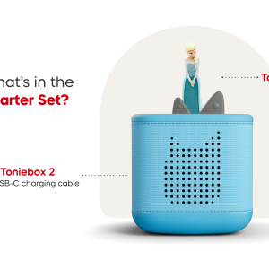 This Starter Set comes with a Disney Frozen: Elsa Tonie figurine and the Sky Blue Toniebox 2.