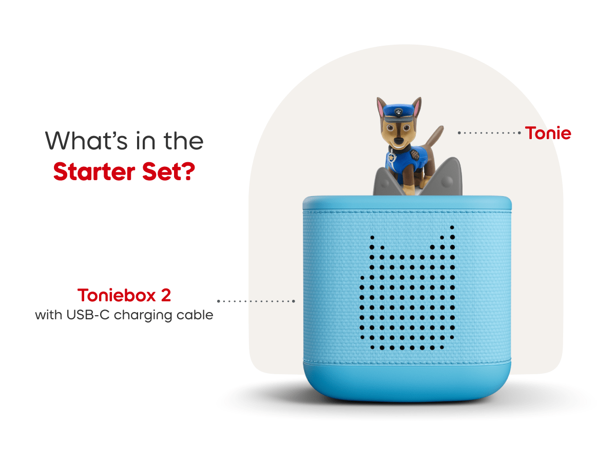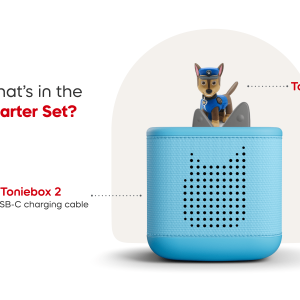 This Starter Set comes with a PAW Patrol: Chase Tonie figurine and the Sky Blue Toniebox 2.