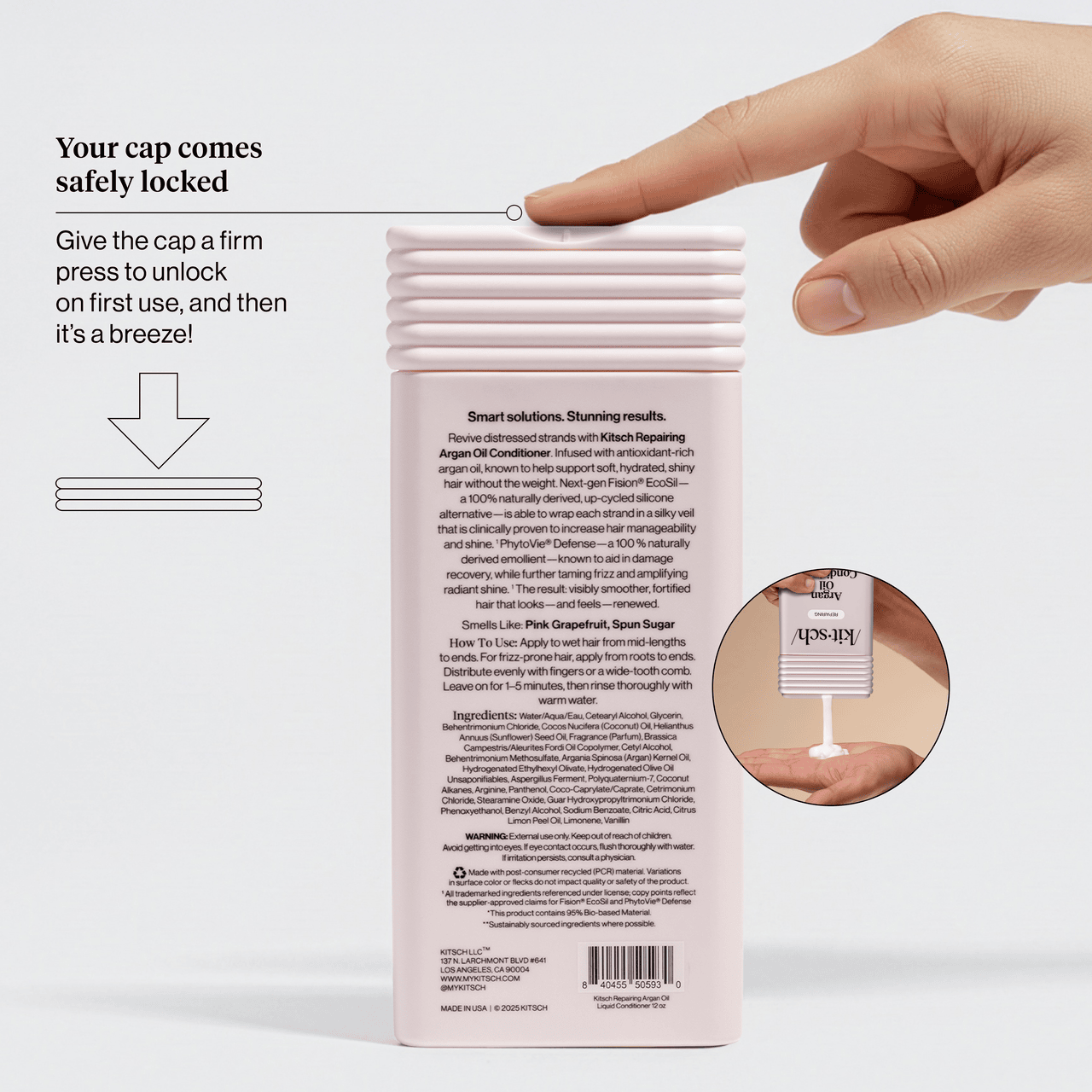 Pro Tip: If you love this formula. try our travel friendly. TSA-approved Kitsch Repairing Argan Oil Conditioner Bar – perfect for travel & gym bags!