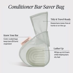 - Mesh fabric keeps solid conditioner bar safe and slip-free