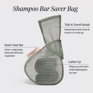 - Wear the loop around your wrist and wet the bag. Rub the bag and bar between both hands to create a lather. then gently massage through your hair.